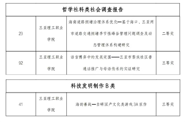 在第十二屆 “挑戰(zhàn)杯” 海南省大學(xué)生課外學(xué)術(shù)科技作品競(jìng)賽中,三亞理工職業(yè)學(xué)院表現(xiàn)亮眼,不僅在主體競(jìng)賽中成功斬獲二等獎(jiǎng)1 項(xiàng)、三等獎(jiǎng)2 項(xiàng),同時(shí)在 “人工智能+” 專項(xiàng)競(jìng)賽中實(shí)現(xiàn)突破,首次拿下三等獎(jiǎng)1項(xiàng),以多元成果展現(xiàn)學(xué)校在大學(xué)生科技創(chuàng)新培養(yǎng)領(lǐng)域的扎實(shí)成效。