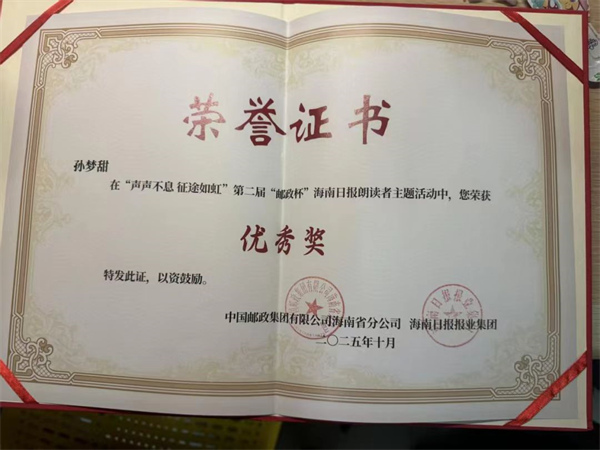 第二屆“郵政杯”海南日?qǐng)?bào)朗讀者主題活動(dòng)榮獲優(yōu)秀獎(jiǎng)