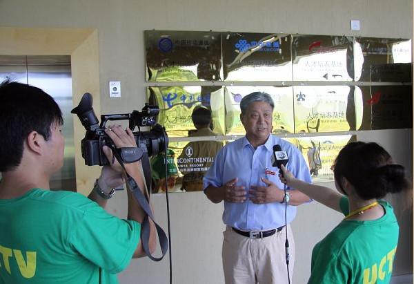 院長助理姜立功接受UCTV校園記者采訪,談三亞理工深入開展校企合作的意義