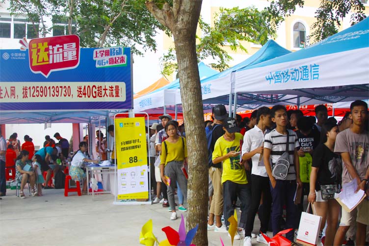新生排隊(duì)等候辦理入學(xué)手續(xù)