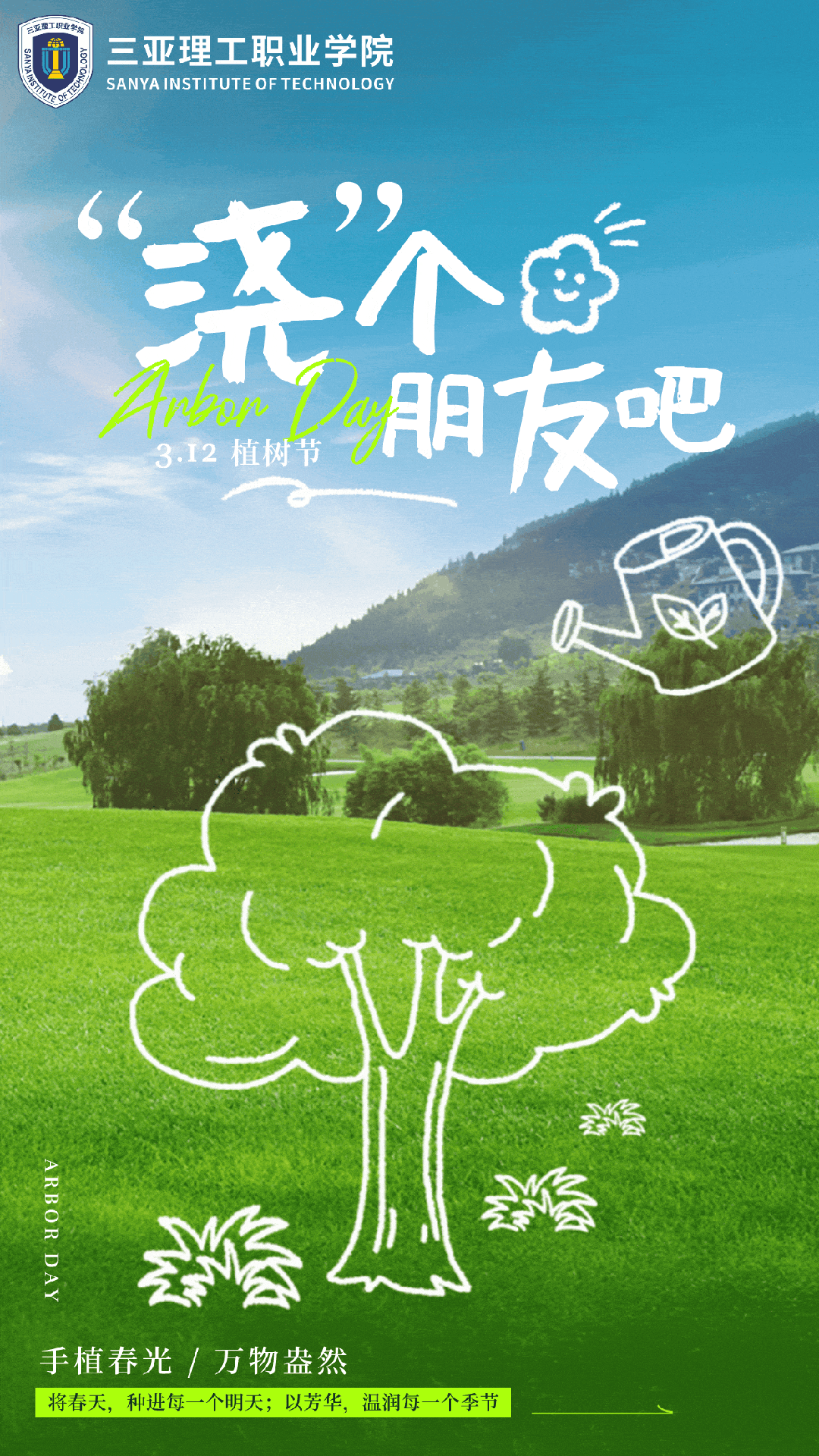 為了迎接第46個(gè)植樹節(jié)的到來,為推進(jìn)綠美生態(tài)建設(shè),倡導(dǎo)積極健康文明的生活方式,進(jìn)一步提高學(xué)生們保護(hù)環(huán)境的愛綠護(hù)綠的意識(shí),積極踐行志愿者精神,共創(chuàng)美好校園,學(xué)校開展“植”此青綠,做追“鋒”少年活動(dòng)。3月12日下午,三亞理工職業(yè)學(xué)院校團(tuán)委及各學(xué)院共同...