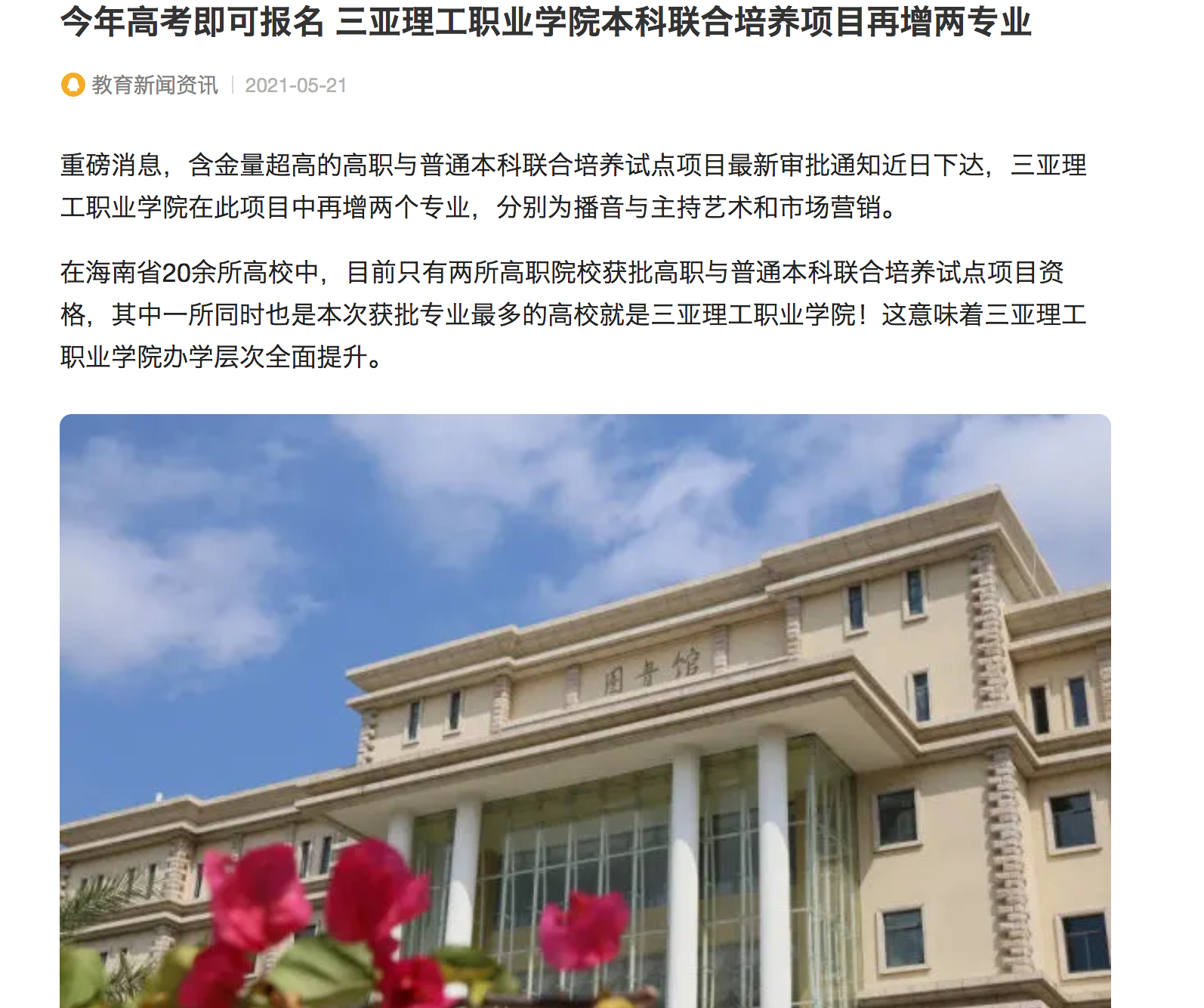 三亞理工職業(yè)學(xué)院備受主流媒體關(guān)注,紛紛報道所取成果