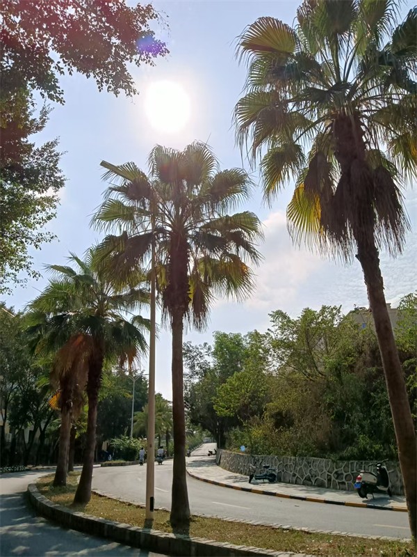 陽(yáng)光傾灑,校園的路在棕櫚樹的陪伴下延伸向遠(yuǎn)方。樓宇靜靜佇立,似在守護(hù)每一份青春的夢(mèng)想。