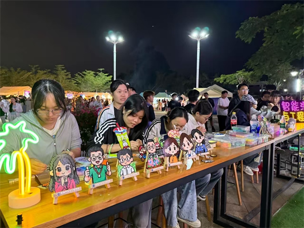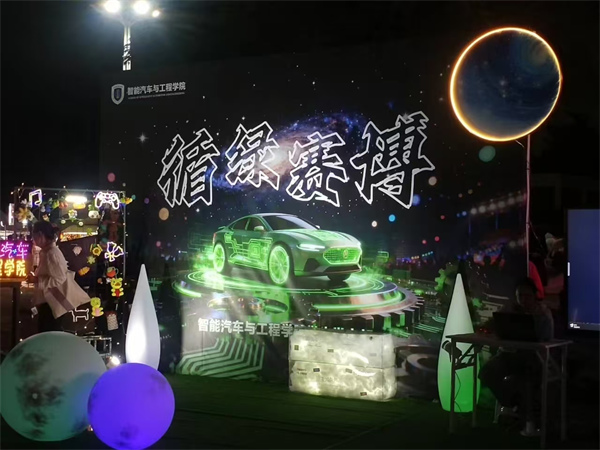 學(xué)校智能汽車與工程學(xué)院的“循綠賽博”星球,主打科技與綠色的碰撞。“智改車潮”探索新技術(shù)在汽車領(lǐng)域的酷炫應(yīng)用,“碼創(chuàng)工坊”用AI+編程實(shí)現(xiàn)從代碼到實(shí)物的創(chuàng)造,“車韻文創(chuàng)”將汽車美學(xué)融入潮流設(shè)計(jì),“椰韻非遺”則讓海南本土傳統(tǒng)手藝與綠色主題相融,工科生的創(chuàng)新力與環(huán)保理念在此完美詮釋。