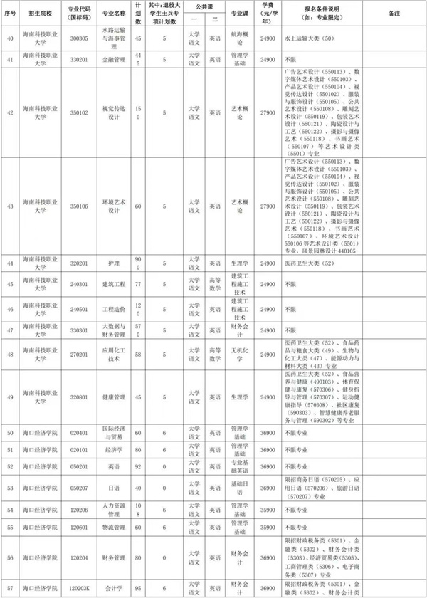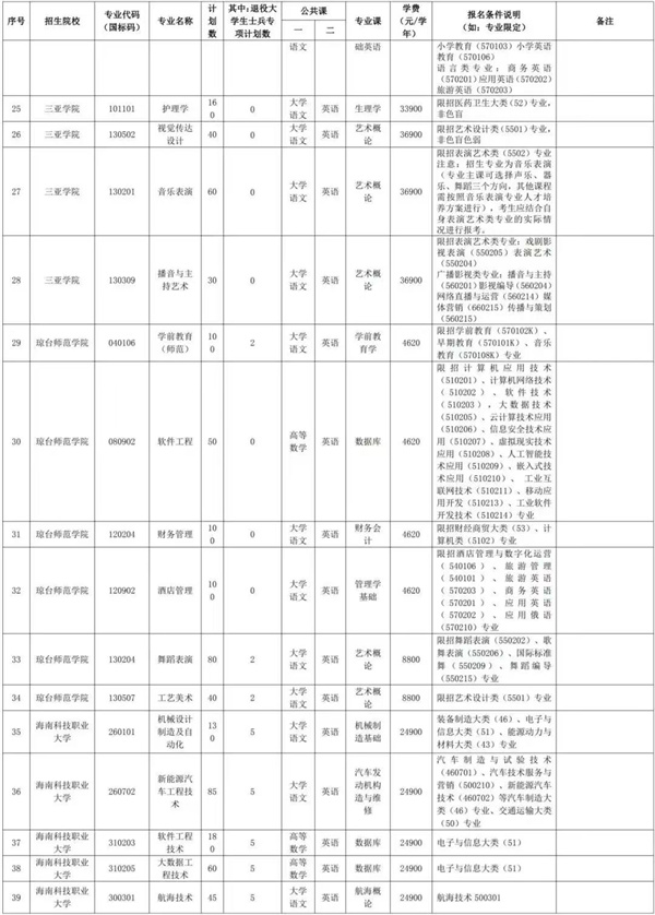 1.2025年海南省專升本招生院校和專業(yè)詳見附件1,考生(含以下報考兩個專項計劃的考生)須選擇報考符合院校要求報考條件的專業(yè)。