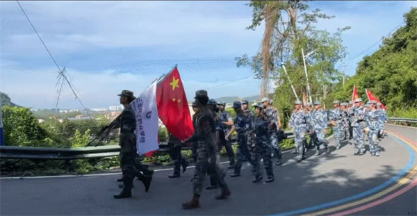軍歌回蕩山間,腳步丈量土地。13公里蜿蜒山路,兩個(gè)半小時(shí)堅(jiān)持不懈,汗水映著滿山綠林,青春在行進(jìn)中熠熠生輝。